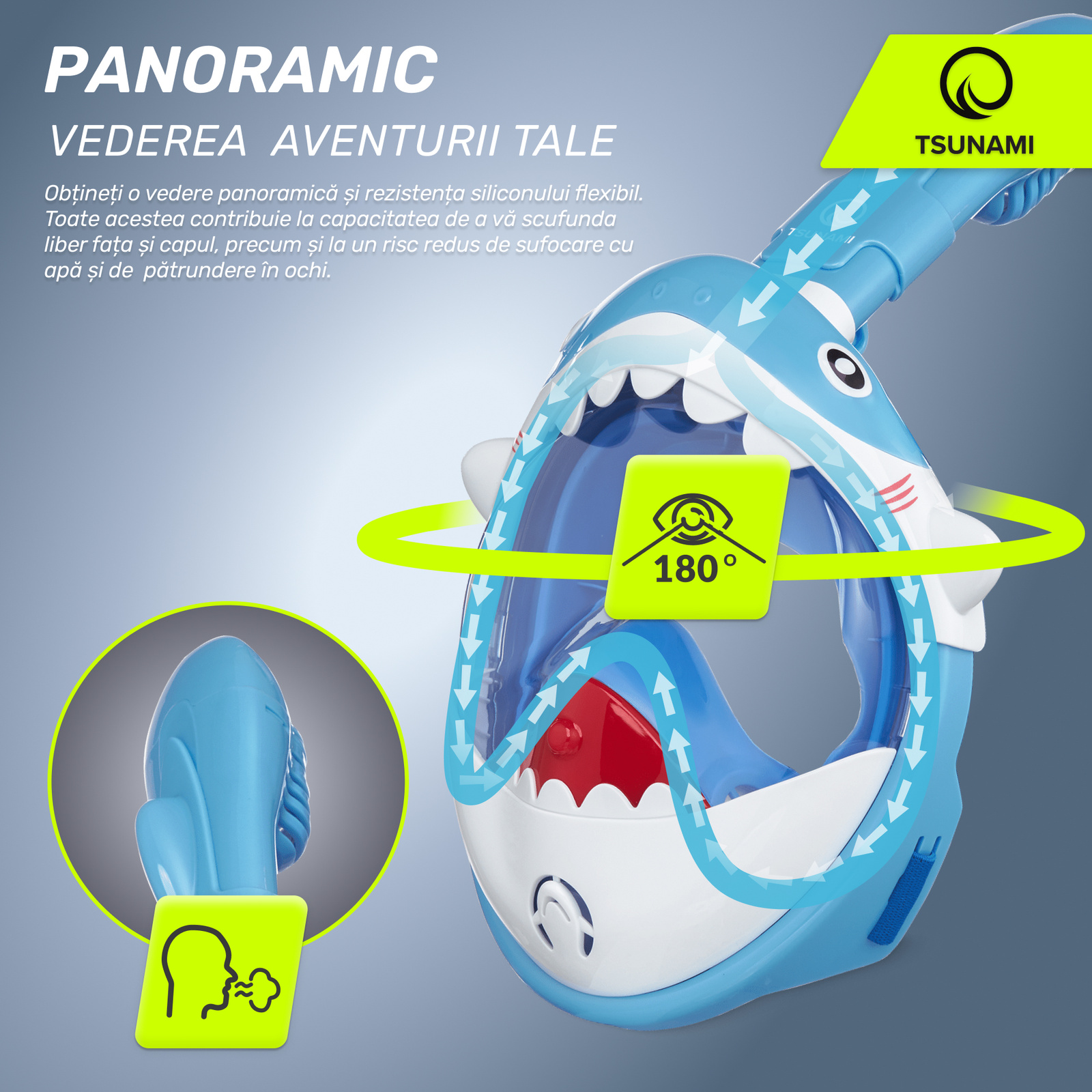 Mască completă de scufundări TSUNAMI panoramică pentru copii