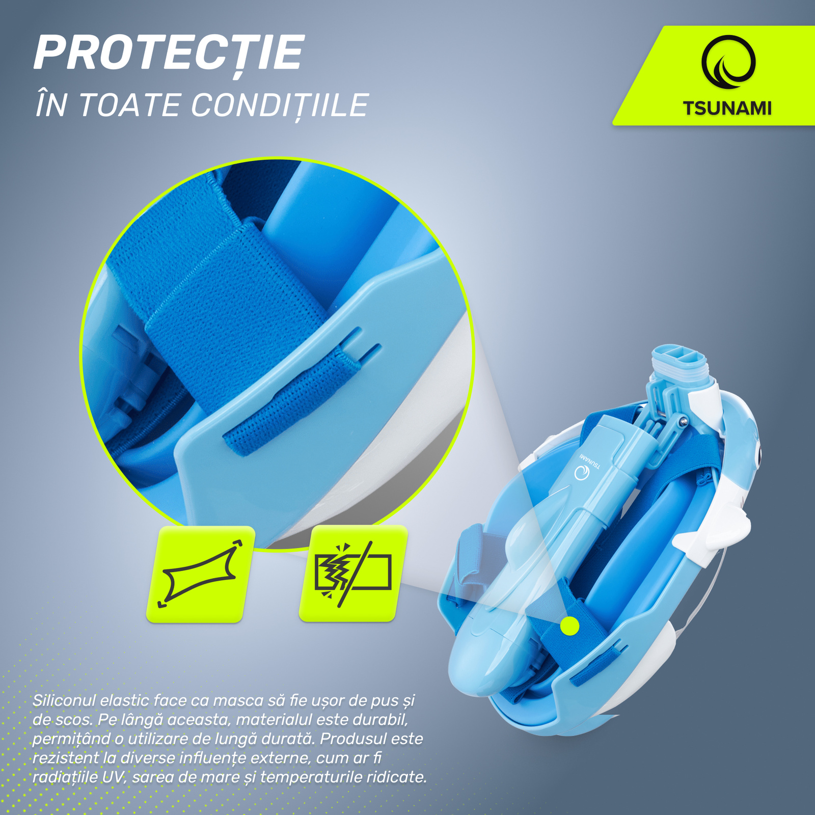 În masca de snorkeling TSUNAMI veți găsi tot ce are nevoie copilul dumneavoastră pentru a se bucura de activitățile de vacanță. Consultați acum parametrii măștii noastre de snorkeling pentru copii!