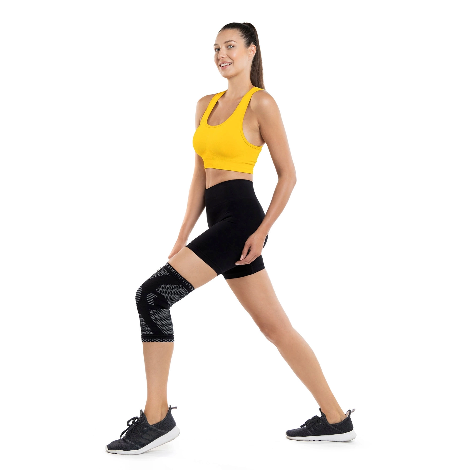 Forma anatomică a ortezei sportive pentru genunchi se potrivește perfect cu corpul. Materialul special profilat cu spațiu pentru rotulă, minimizează riscul de luxație și de rotație necontrolată a articulației. Genunchiera se potrivește perfect pe piele la nivelul articulaților articulare, astfel încât acestea să poată funcționa în toată gama lor de mișcare. Materialul moale de la nivelul curburii genunchiului nu pune presiune pe zonele sensibile. Cercul de strângere al ortezei este acoperit cu silicon, ceea ce împiedică alunecarea în jos de unul singur. Stabilizatorul rămâne la locul său pe picior, adaptându-se la mișcarea genunchiului și nu îi limitează amplitudinea de flexie.