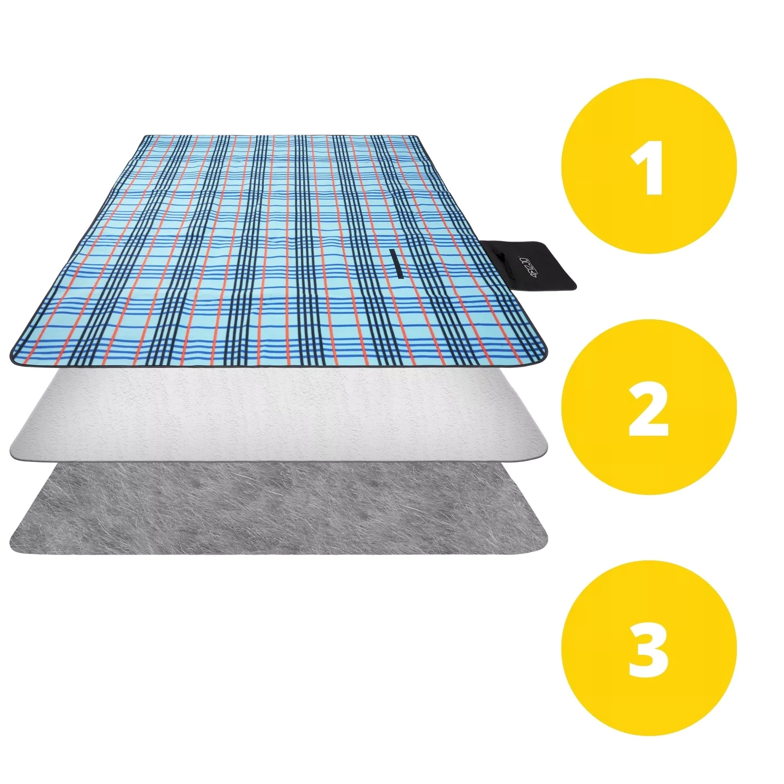 Cel mai important aspect al unui picnic reușit este confortul. De aceea, pătura noastră de picnic este fabricată din materiale izolatoare de înaltă calitate. Stratul inferior este impermeabil și hidrofob, oferind protecție totală împotriva umezelii. Mai mult, această pătură asigură izolare eficientă împotriva solului rece, ceea ce îți permite să o folosești pe diverse suprafețe fără griji. Îți faci probleme din cauza murdăriei? Tot ce trebuie să faci este să ștergi partea inferioară cu o cârpă umedă!