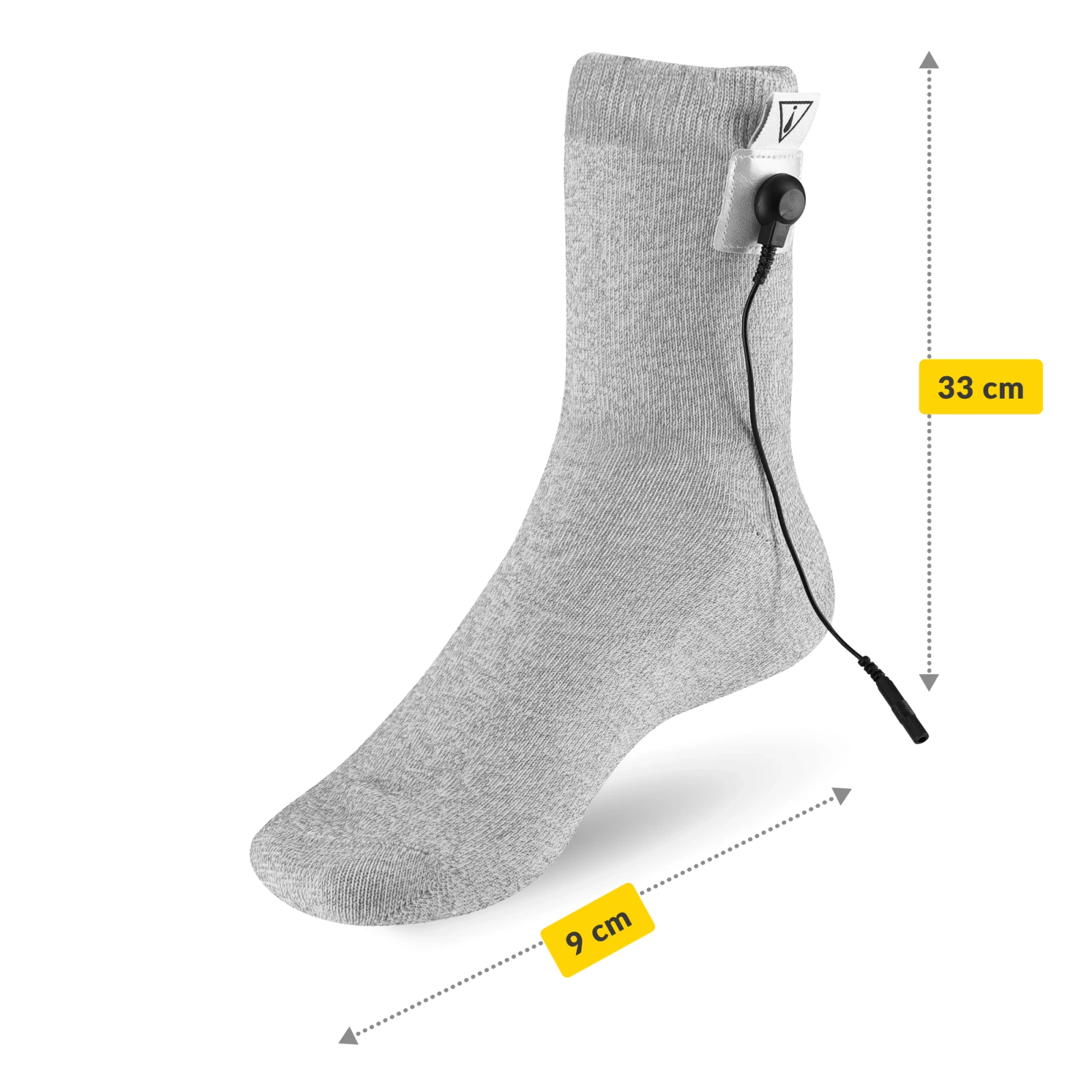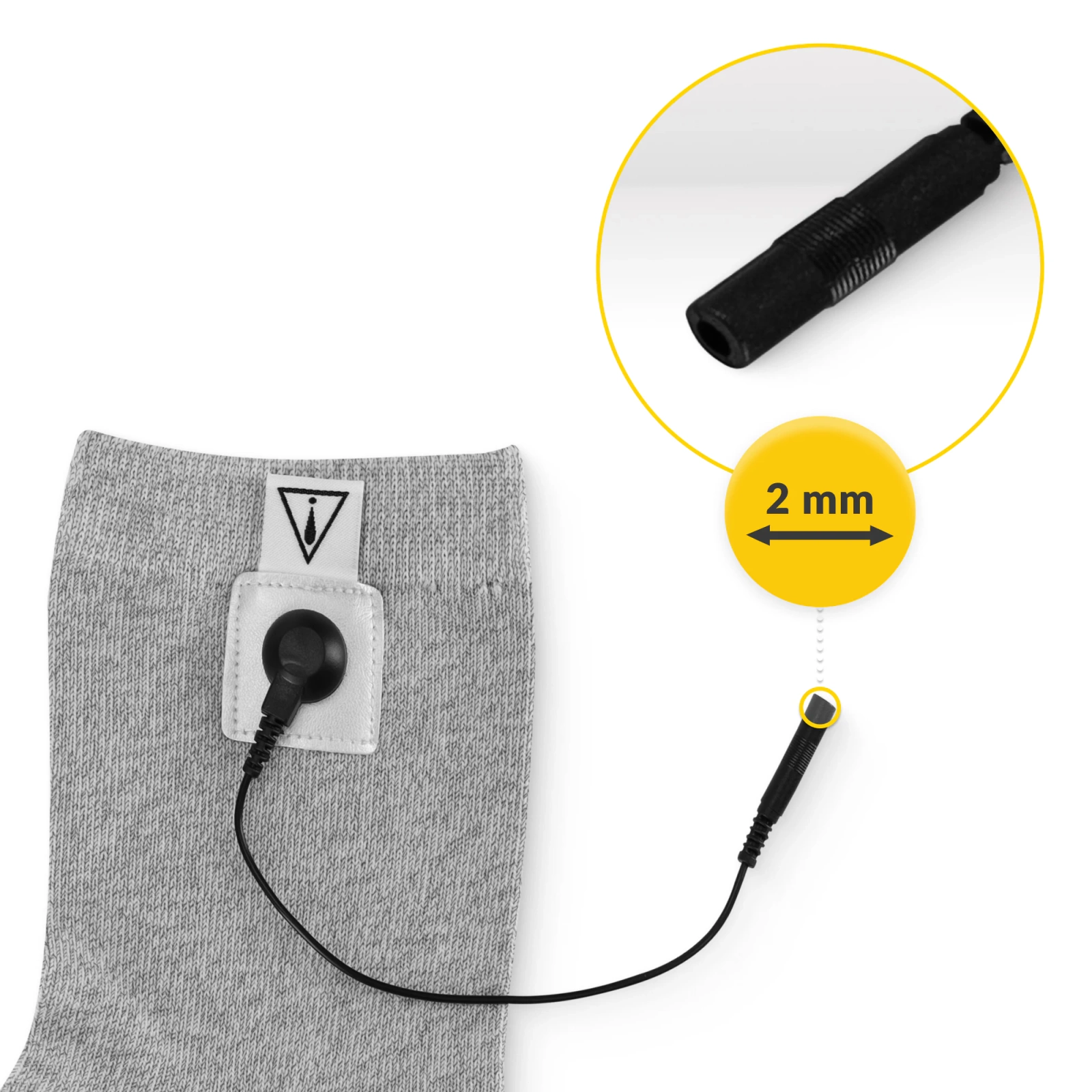 ➡️ Atașează electrodul gelatinos, inclusă în set, la aproximativ 4 cm de marginea superioară a șosetei.