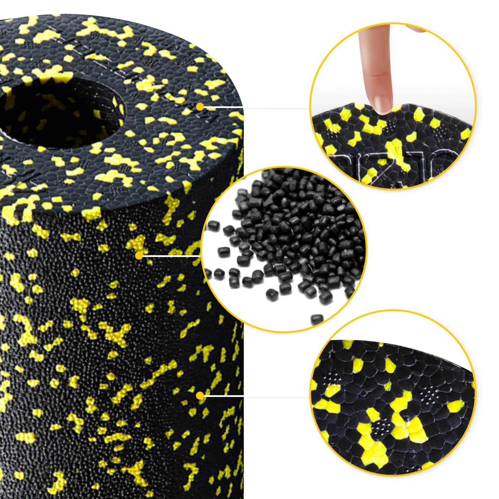 Rola de masaj EPP se remarcă prin duritate ridicată și rezistență la deformare, asigurând poziționarea confortabilă a corpului în diverse poziții și accelerând procesul de hidratare musculară. Astfel, ajută la prevenirea altor leziuni și traume. Rola este ușor de curățat și dezinfectat și poate fi spălată după fiecare antrenament, fiind impermeabilă și garantând o igienă corespunzătoare