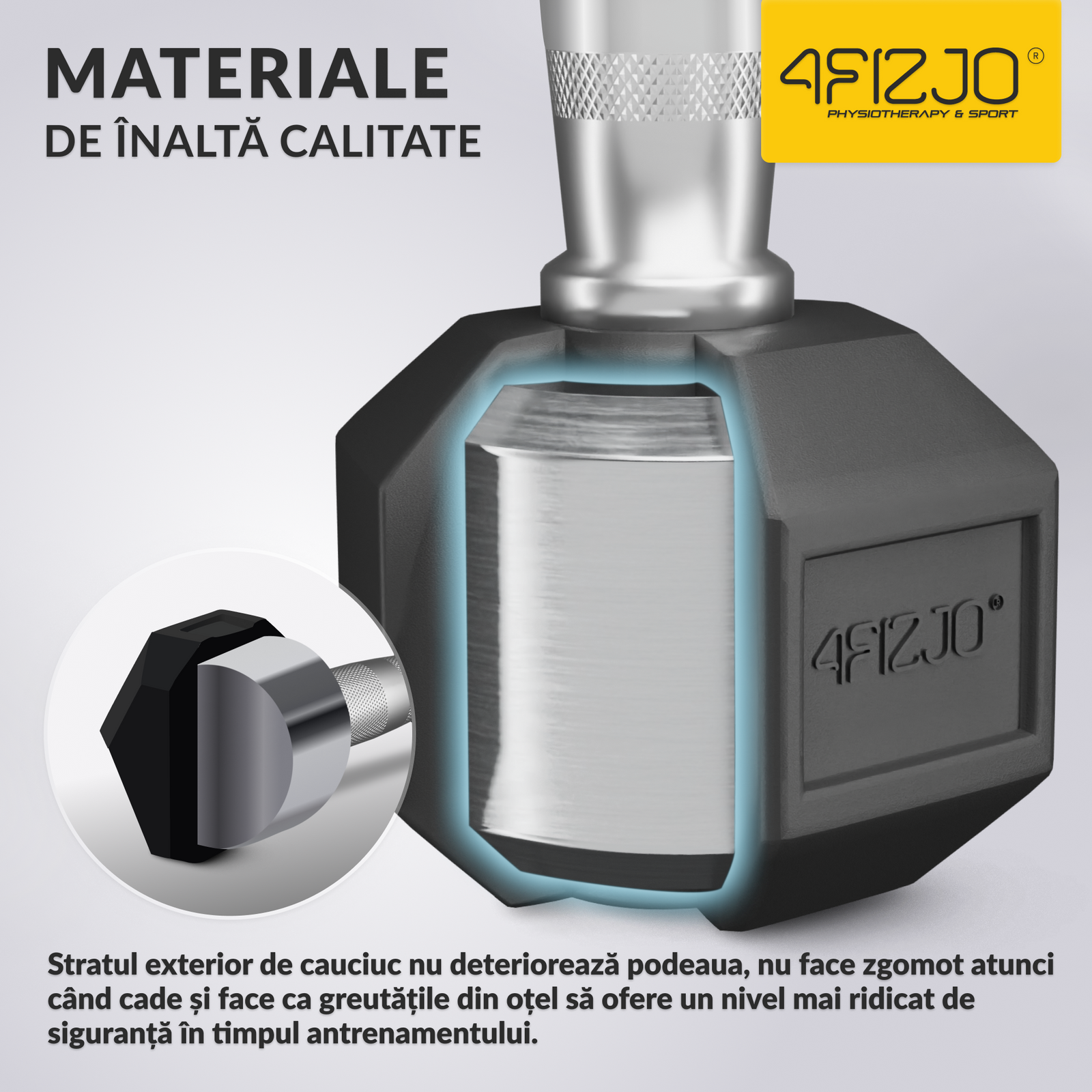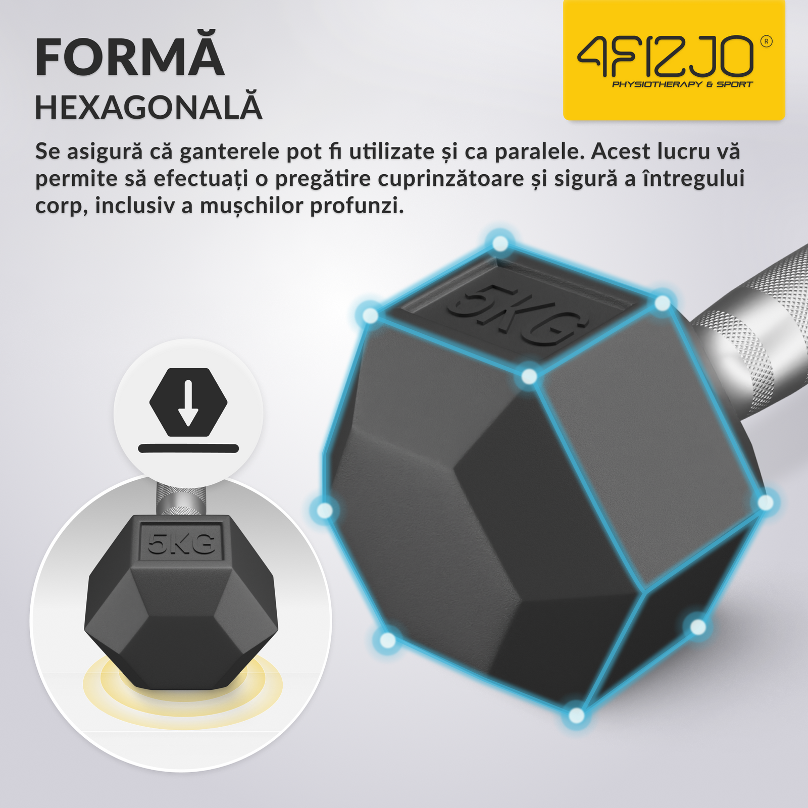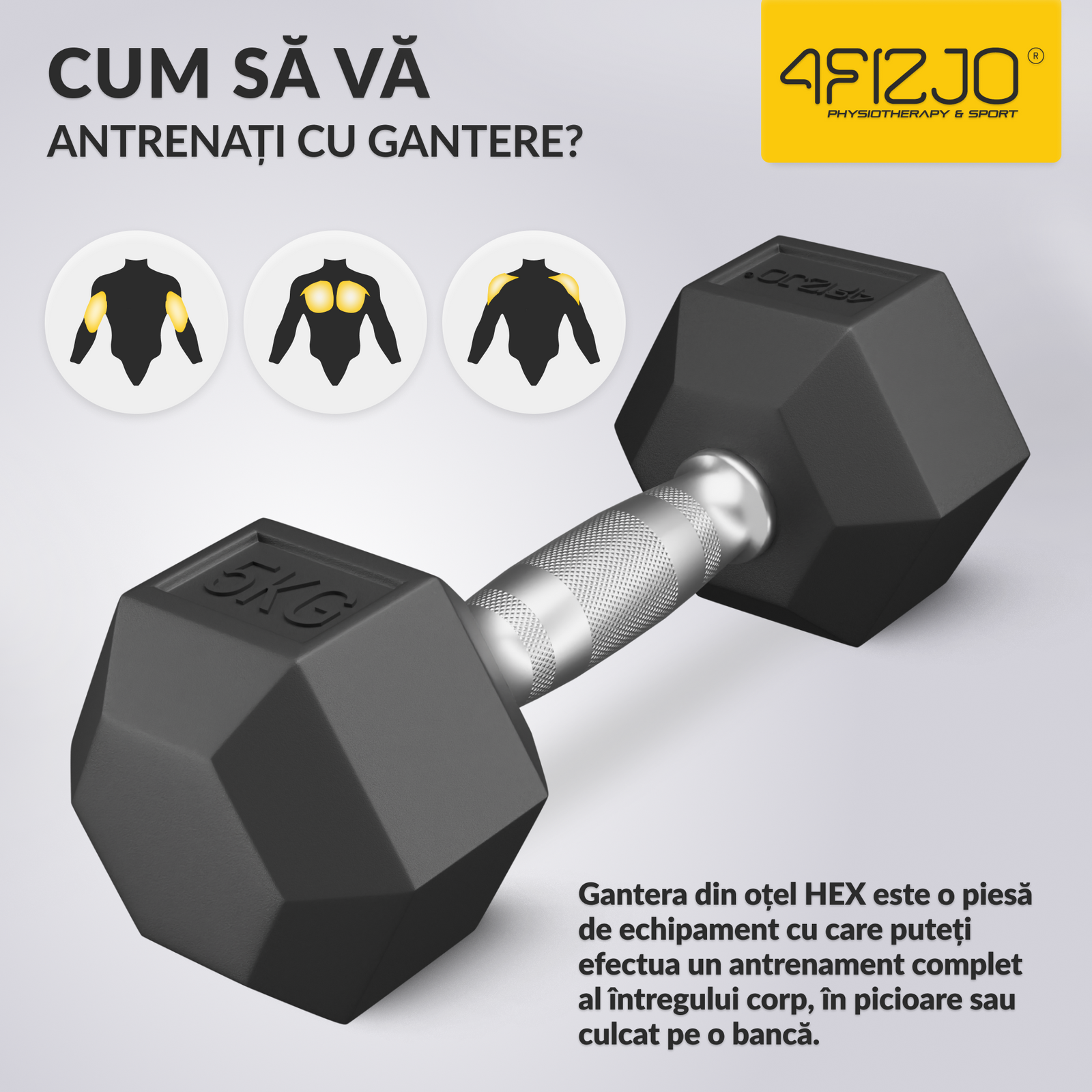 Gantere din oțel HEX 4FIZJO 5 kg (1 bucată)